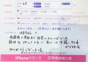 【iPhone6sのバッテリー修理でお越しのはまちゃん様からいただいたお声】